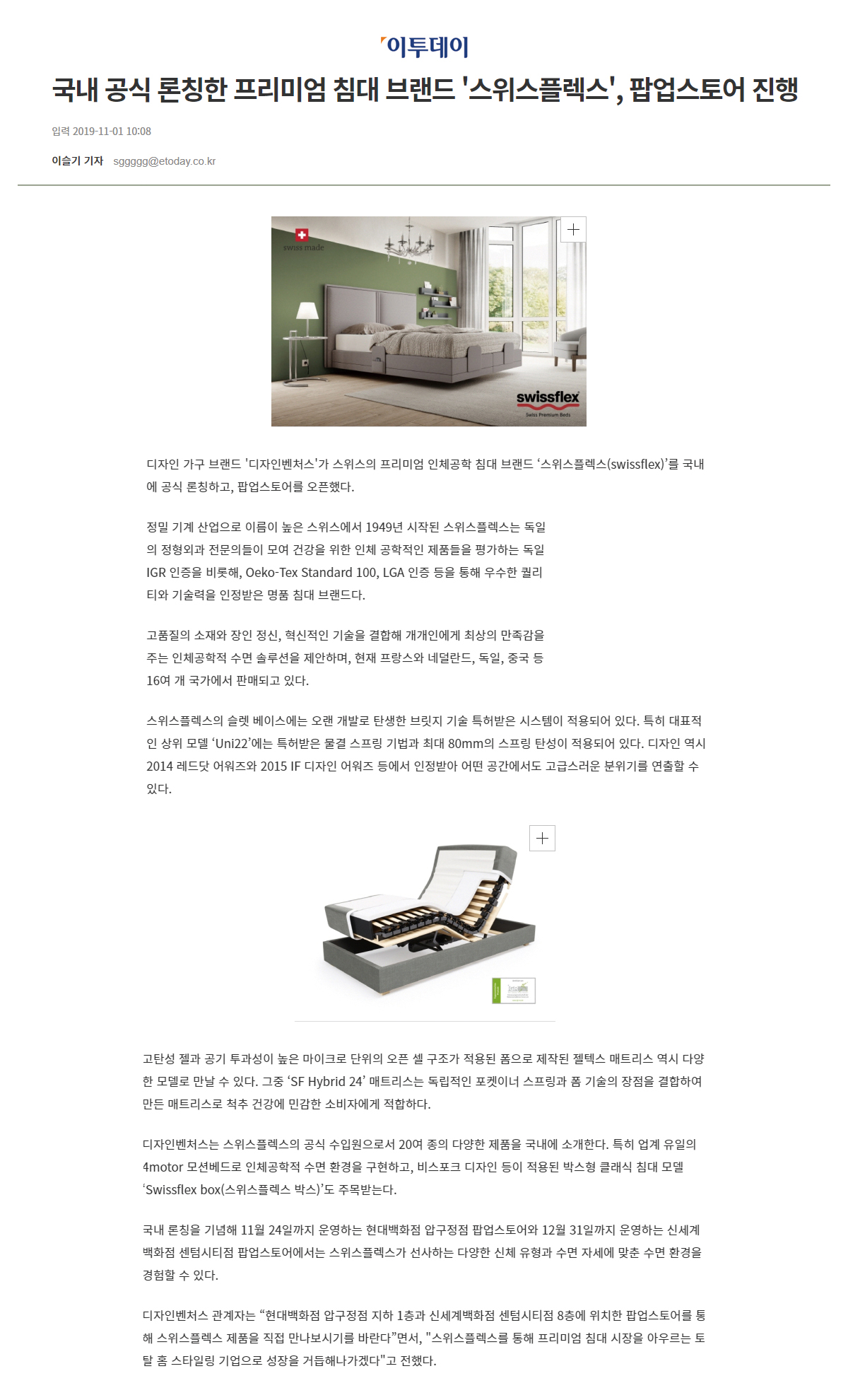 디자인벤처스 프리미엄 침대 '스위스플렉스' 국내 공식 론칭 최고관리자 2021-07-23 최고관리자 MEDIA 0 1334 2021.07.23 15:14 디자인벤처스 프리미엄 침대 '스위스플렉스' 국내 공식 론칭